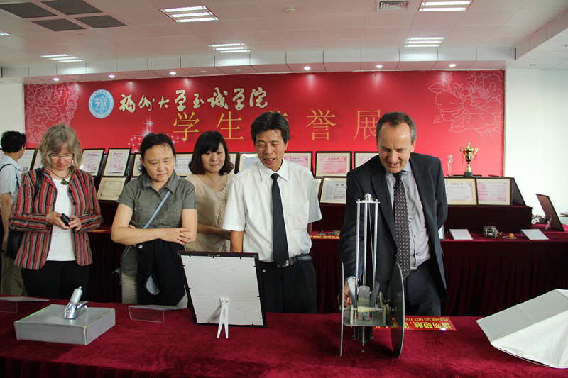 签约仪式后,双方互赠礼物并合影留念。随后,代表团一行还在院领导的陪同下参观了学院的学生荣誉室、图书馆、学生创新中心、第一实验实训中心等地。10月11日上午,代表团一行还将与德国留学合作项目的2013级物流管理系学生见面,并参观学院相关合作系。
