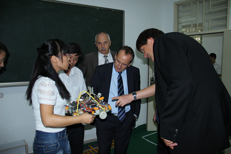 1011上午,德国凯泽斯劳滕应用科技大学校长康拉德·沃尔夫教授、常务副校长鲁道夫·贝克尔教授、数学与计算机科学系马丁·玻姆教授一行3人来到电气工程系,与相关合作系系主任座谈交流并参观了电气工程系。院长吴秋明教授、院党委专职副书记陈为旭研究员、副院长朱敏琛副教授、院长助理兼两办主任林行老师、电气工程系主任郑崇苏副教授、机械工程系主任范扬波副教授等与代表团一行座谈交流并陪同参观。