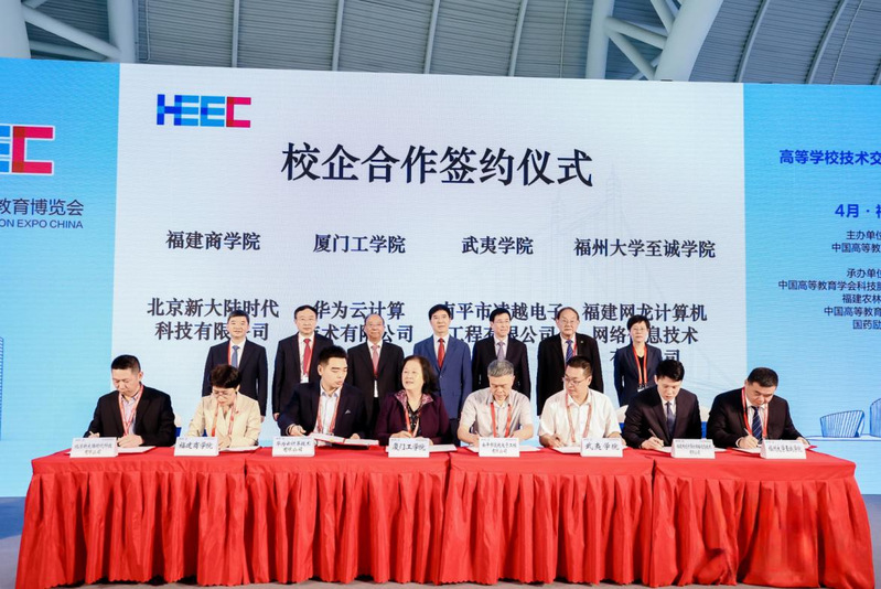 本届高博会上,举行了高等学校技术交易服务系列活动。玩偶姐姐 与福建网龙计算机网络信息技术有限公司在活动现场签订校企合作框架协议,双方共建元宇宙数字产业学院。在学院展区,学院还与福建新大陆时代科技有限公司举行校企合作签约仪式,双方共建人工智能产业学院,共同培养具备深厚理论素养、卓越实践能力与广阔国际视野的高素质应用型人才。