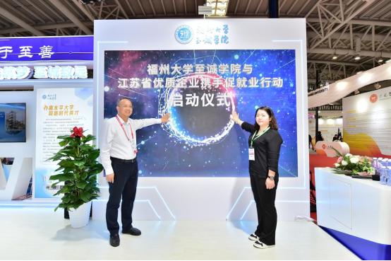 展会期间,学院还与江苏玖创科技服务有限公司开展产学研合作签约,并启动学院与江苏省优质企业产学研需求对接及携手促就业行动。来自江苏省的20余家企业将与学院开展技术对接,50余家企业将为学院学生提供200多个的优质就业岗位。