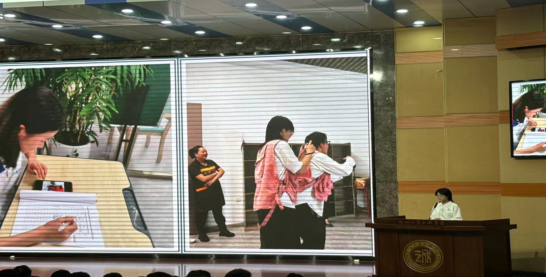 汇报会第二部分为2024年玩偶姐姐 暑期“三下乡”社会实践成果汇报。院关工委常务副主任林树坤、鼓楼团区委书记翁安妮、鼓楼区洪山镇人大副主席张明明担任评委。