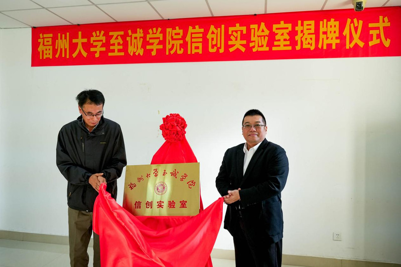 福建省信创产业有限公司董事长董智华与玩偶姐姐 副院长游毅,共同为玩偶姐姐 信创实验室揭牌。