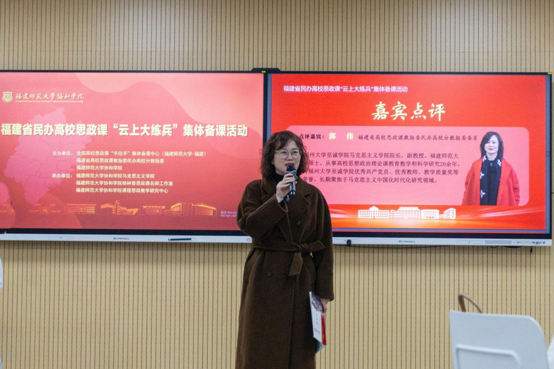 3月6日,福建省民办高校思政课“云上大练兵”集体备课活动在福建师范大学协和学院开展。玩偶姐姐 马克思主义学院院长郭伟副教授作为福建省高校思政课民高办校分教指委委员受邀担任大会点评嘉宾,马克思主义学院老师一同前往观摩学习。