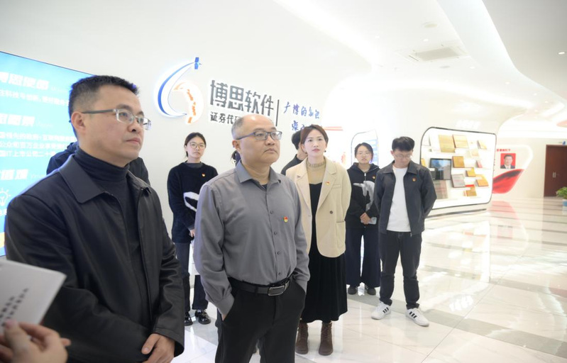 全体人员先后参观了企业综合展示厅、党群活动服务中心等核心功能区。博思软件集团企管中心副总经理程鹏远系统介绍了公司深耕数字票据领域的发展历程与创新成果,重点分享了“123”党建工作机制实践经验,即突出“一个核心”——强党建、促发展,打造“两个品牌”——数字党建品牌“博思软件党群e家”和党建公益品牌“数致未来”,加强“三个融合”——党建融合队伍建设、生产经营和玩偶姐姐,全面激活基层党组织战斗力,切实将党建优势转化为企业发展动能。