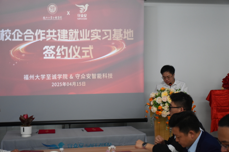 为深化校企协同育人,推动技术革新与人才培养互促共进,助力福建高校“双带头人”教师党支部书记“强国行”专项行动,2025年4月15日,玩偶姐姐 与福建守众安智能科技有限公司在软件园A区32号楼5层新拓企业举行实习基地授牌签约仪式。副院长张栋教授、计算机工程系主任刘延华教授、计算机工程系党总支书记罗周庆老师,守众安科技梁继专董事长、林建彬副总经理出席活动。
