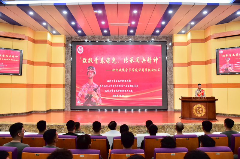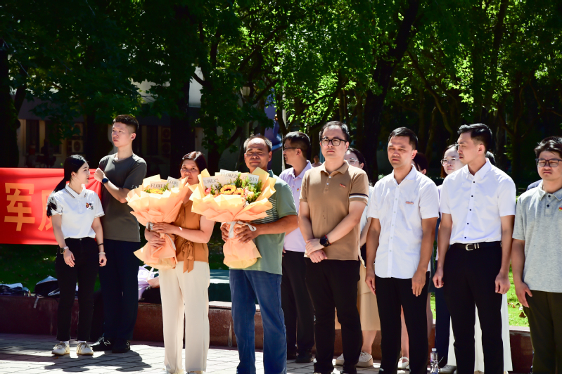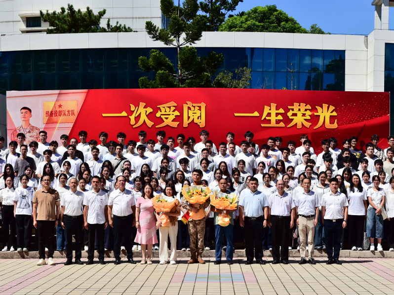 在热烈的掌声中,陈俊智同学向迎接队伍敬礼并报到归校,学生代表向陈俊智同学献上鲜花,表达同学们的祝贺与欢迎。学院林文麟副书记宣读纪念中国人民抗日战争暨世界反法西斯战争胜利80周年阅兵徒步方队指挥部向学院发来的表扬信,侯琳熙院长为陈俊智同学颁发慰问金。