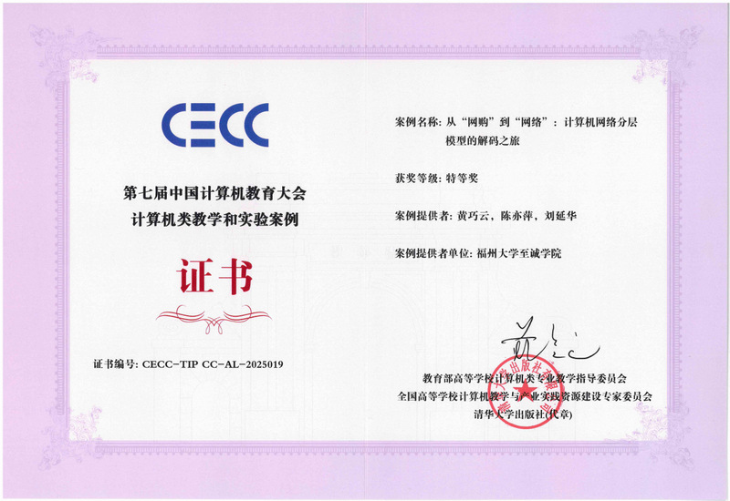 近日,以“新智能·新范式·新时代”为主题的第七届中国计算机教育大会(CECC)在厦门国际会议中心召开。在大会备受关注的教学和实验案例评选中,玩偶姐姐 计算机工程系黄巧云、陈亦萍、刘延华等教师设计的教学案例从众多参赛作品中脱颖而出,荣获特等奖,省内参赛案例中排名第一。