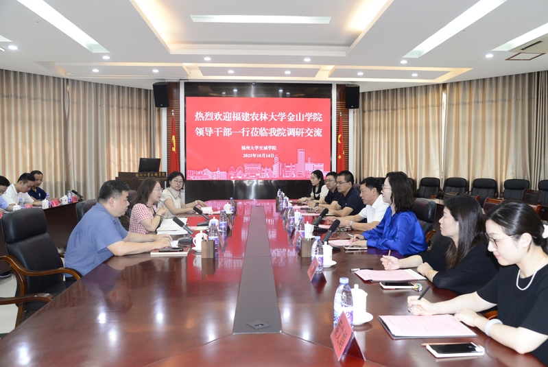 10月14日上午,福建农林大学金山学院一行来院调研交流。学院党委常务副书记何小红、院长侯琳熙、院长助理邵艳群在行政楼一楼会议室会见来宾并举行座谈。福建农林大学金山学院党委常务副书记陈毅,党委委员、副院长(主持工作)坚瑞出席座谈会。座谈会上,何小红常务副书记、侯琳熙院长代表学院介绍了学院的办学定位、发展历程、学科建设、人才培养等基本情况,以及学院在办学过程中的核心优势与实践成果。随后,陈毅常务副书记、坚瑞副院长(主持工作)介绍了金山学院的发展概况,包括学院在农林特色学科打造、产教融合推进等方面的探索与进展。双方围绕党的建设、本科教学资源建设与招生、人才引育与师资队伍建设、薪酬体系结构及绩效改革工作院系架构模式、实验室建设、教学科研业绩奖励制度、人工智能赋能教育教学与教学管理信息化建设、校庆筹备与校友等方面进行深入交流。福建农林大学金山学院党政办公室、党务工作部、研究发展处、人才办公室、教工部(人事处)、教师发展中心、教务处,玩偶姐姐