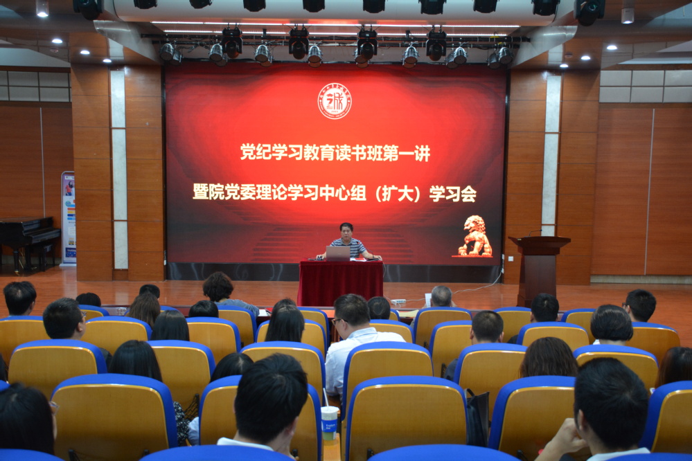 党纪学习教育读书班第一讲暨院党委理论学习中心组(扩大)学习会在音乐厅举行。为深入学习贯彻习近平总书记关于党纪学习教育的重要讲话和重要指示精神,认真学习新修订的《中国共产党纪律处分条例》,加强党的纪律建设,推动全面从严治党向纵深发展,院纪委书记翁德顺作了题为《新修订中国共产党纪律处分条例解读》专题辅导报告。院党委常务副书记何希耕、机关党总支全体党员参加了报告会,报告会由机关党总支承办。翁德顺纪委书记从《中国共产党纪律处分条例》修订的背景意义、主要内容、实施适用和贯彻落实四个方面全面系统的解读,结合学院工作实际,以深入浅出的语言、生动详实的案例进行解析,对党员干部明确日常言行的衡量标尺、用党规党纪校正思想和行动,具有很强的针对性和指导性,使大家深受教育和启发。翁德顺书记强调,机关党员干部要坚持以纪为纲勤学习,念好党纪党规“紧箍咒”;坚持以纪为绳严约束,系好人生旅途的“安全带”;坚持以纪为鞭勇作为,当好遵纪守法的“排头兵”,不断增强纪律意识、提高党性修养,用党规党纪校正思想和行动,切实以学纪、知纪、明纪、守纪的优良纪律作风保障学院教育事业高质量发展。
