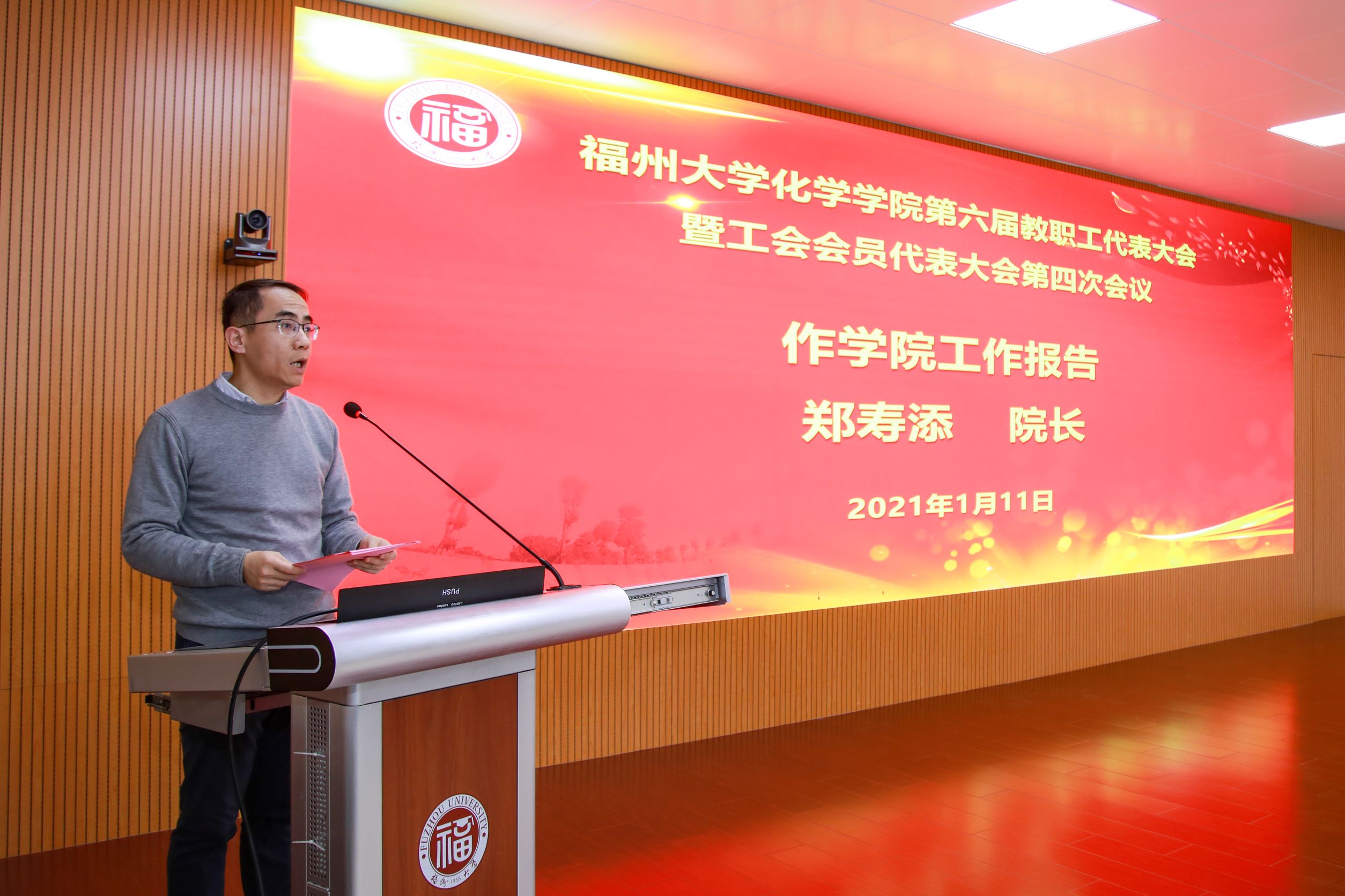 1月11日下午,化学学院第六届教职工代表大会暨工会会员代表大会第四次会议在嘉锡楼413顺利召开。学院领导张泓书记、郑寿添院长、常凯副书记、袁耀锋副院长、唐点平副院长以及66位正式代表、部分特邀代表和列席代表出席会议。