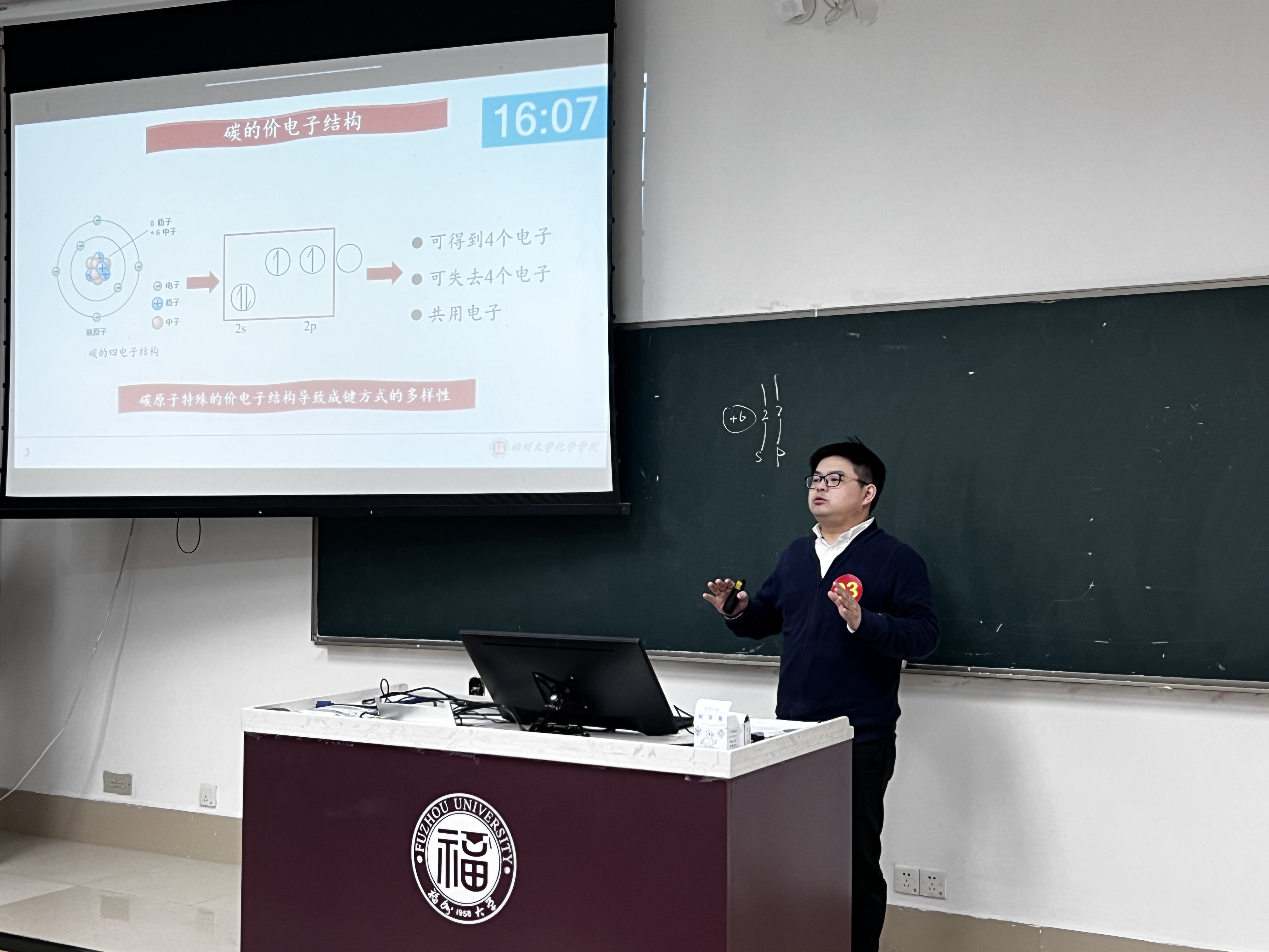 比赛现场紧张有序,陈兆委、孙财、阳灿、杨凯、沈锦妮等5位参赛教师按抽签顺序依次展现了20分钟的精彩“一节课”,展示了我院青年教师的教学风采。竞赛评委根据参赛教师的授课教案、教学组织、教学内容、语言与教态、板书和教学手段等各方面的表现情况,进行实名制打分。经过激烈角逐,无机系的阳灿老师、物化系的孙财老师脱颖而出,分别获得一等奖和二等奖的好成绩。