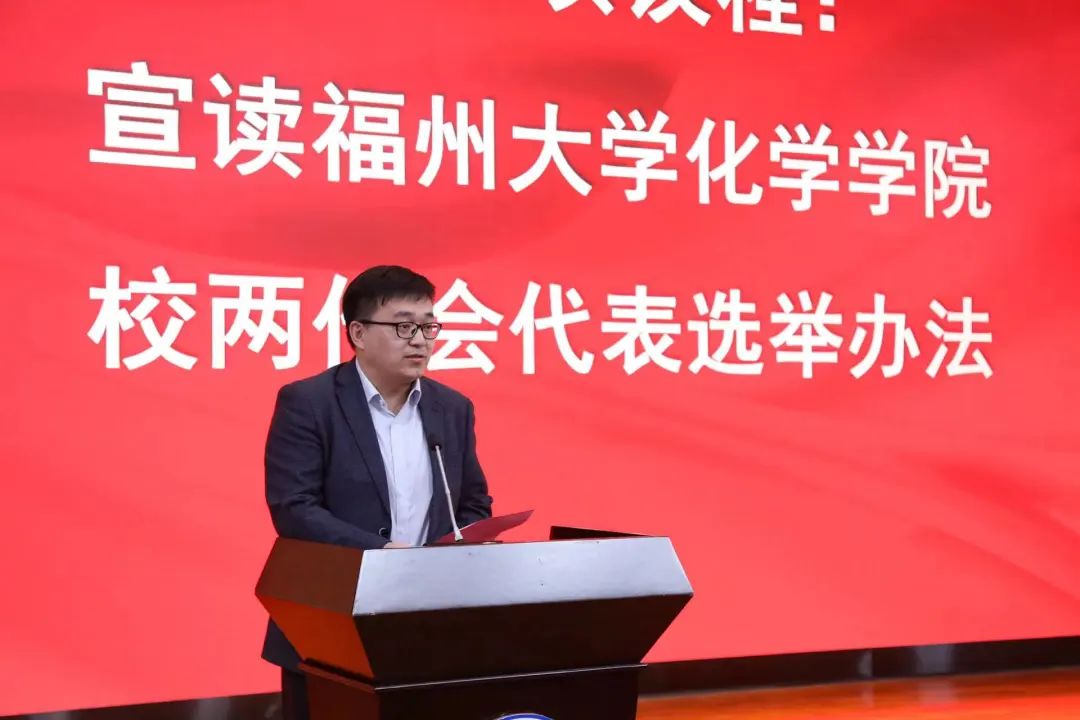 李金宇老师宣读《福州大学第十届教代会暨第十二届工代会化学学院代表选举办法》(草案)。
