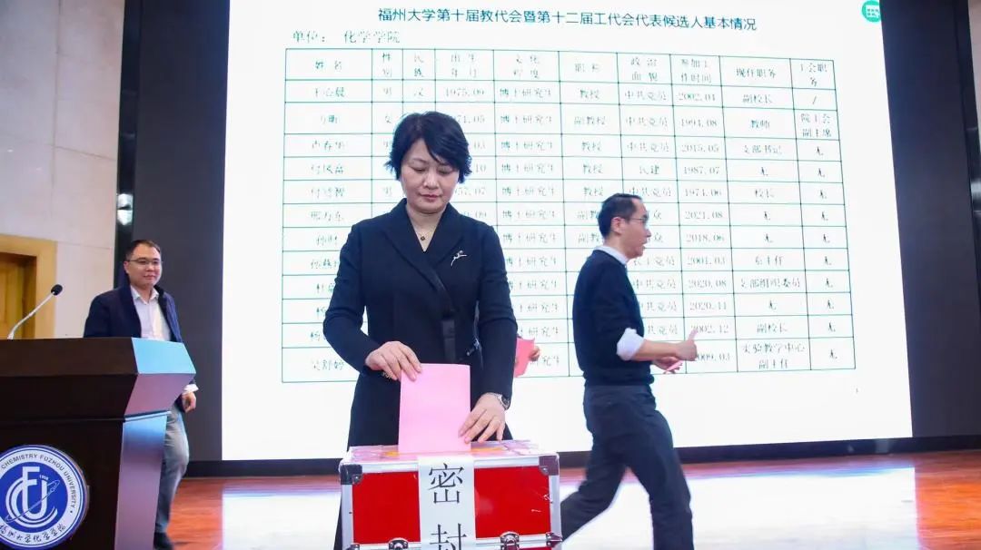 大会根据《关于福州大学第十届教代会暨第十二届工代会代表选举工作的通知》有关规定,选举产生出席校两代会的化学学院代表。大会在庄严的国歌声中拉开序幕。