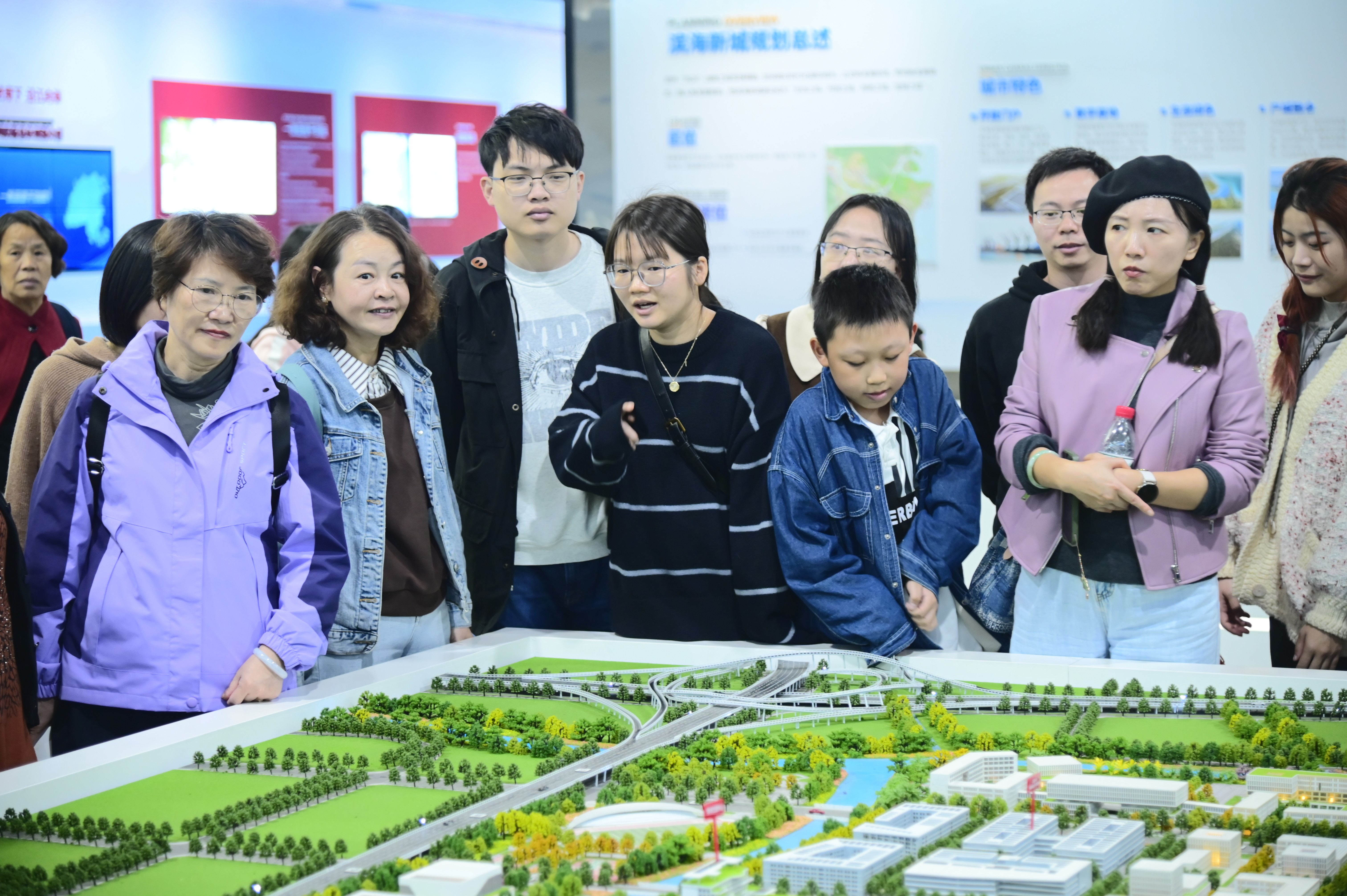 躬身大地,仰望星空。在滨海新城规划展示馆,老师们走进新城建设,身临其境俯瞰滨海新城的全景沙盘,深入了解福州城市副中心——滨海新城的建设进展与未来蓝图。