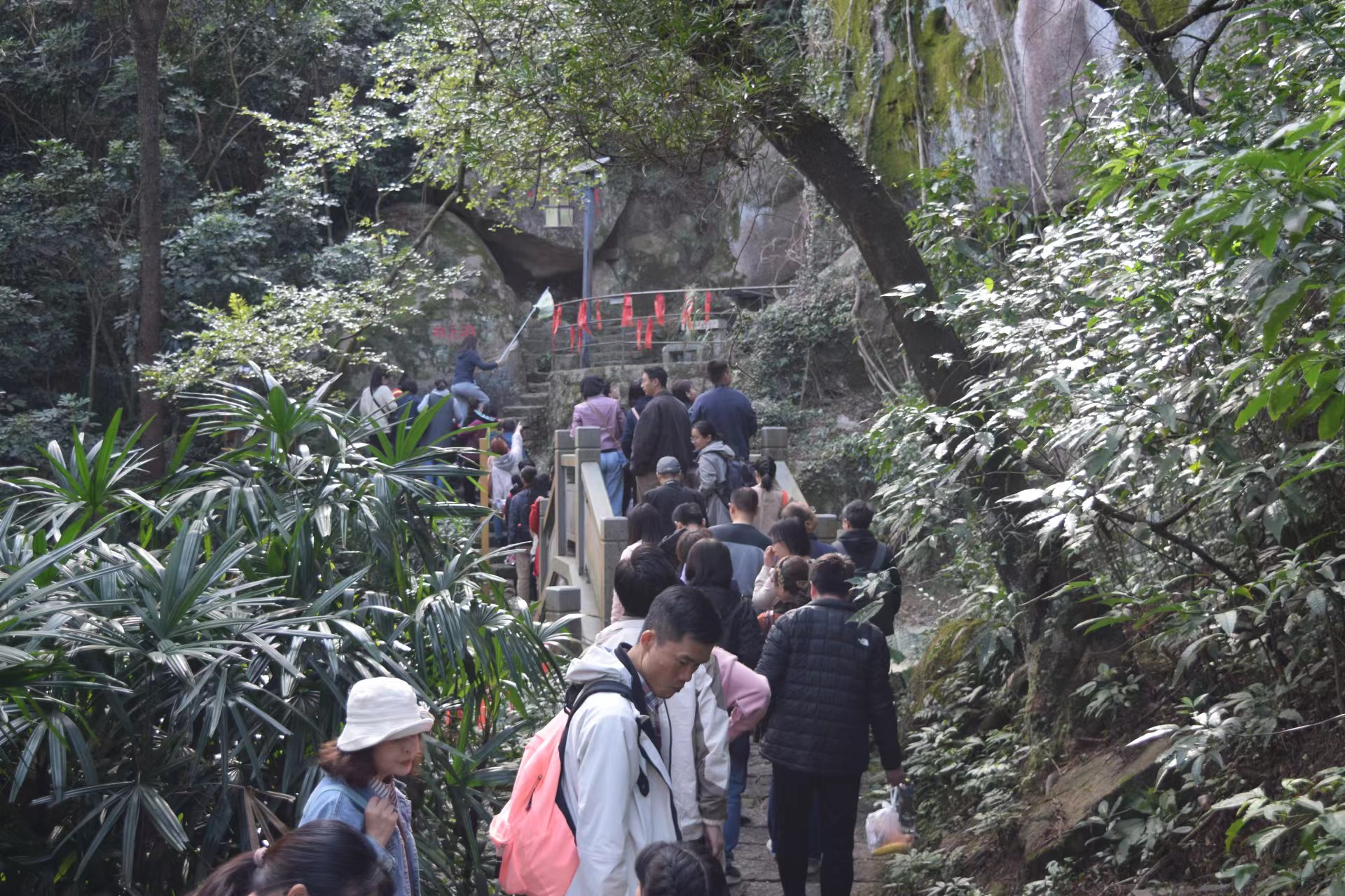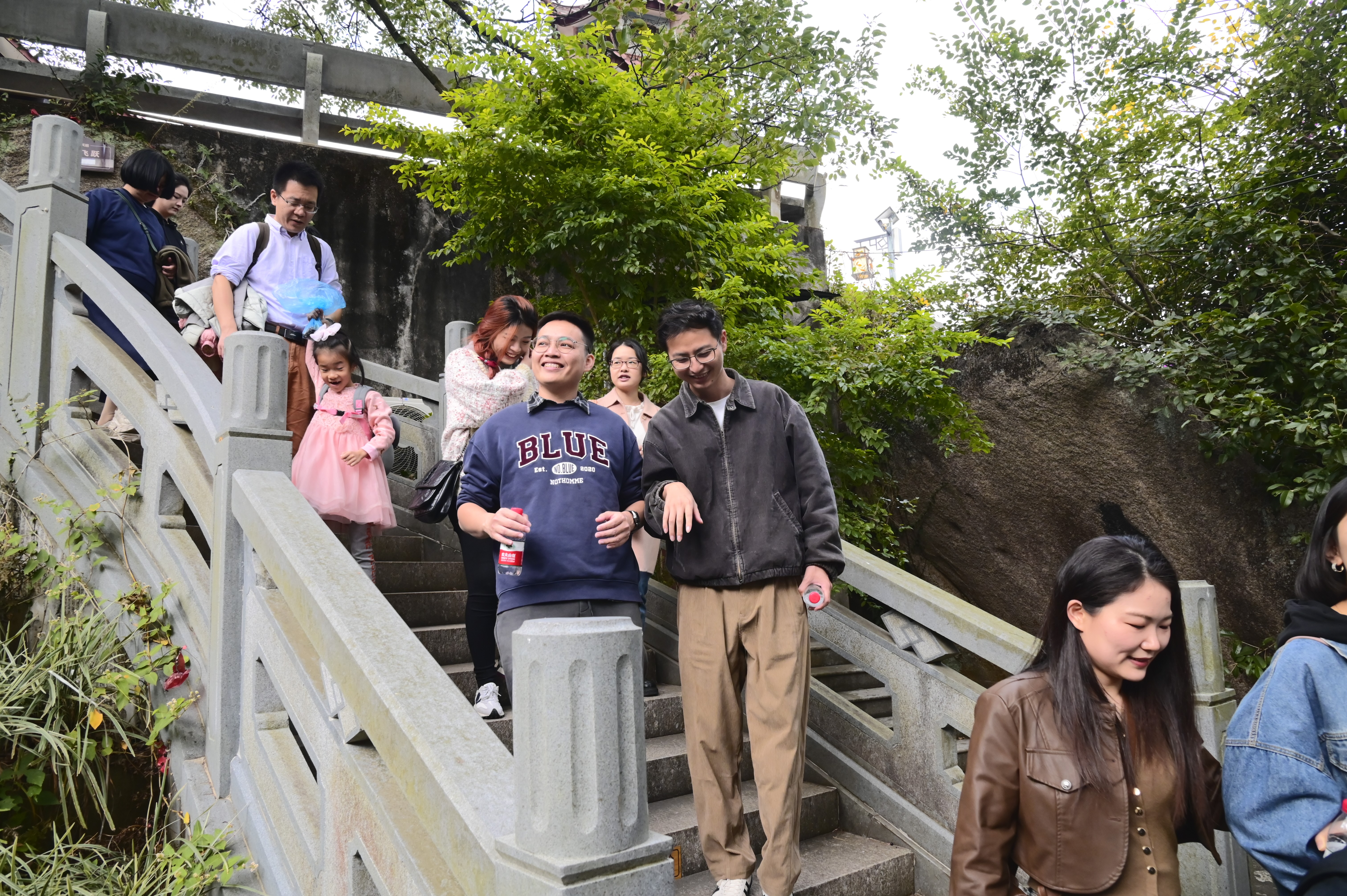 登高远望,赏秋听风。览猴屿洞天岩奇特岩石,穿多样山洞,“状元洞”、“仙人洞”、“蝙蝠洞”,迂回曲折,步步景生。千洞以后,寻光而出,别有洞天,让人不禁感叹大自然的鬼斧神工,一路风光无限,老师们其乐融融。
