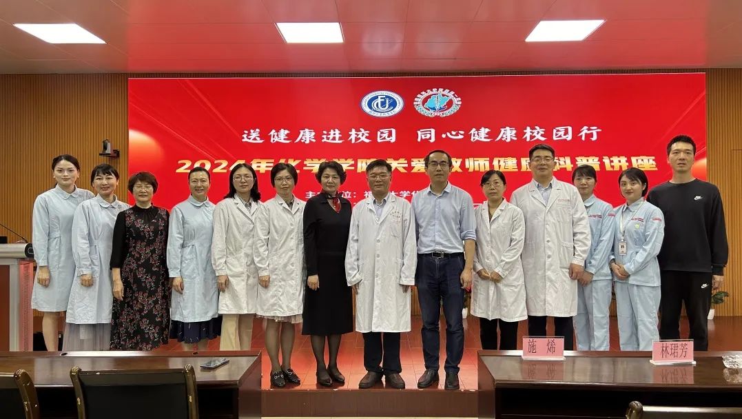 为了高质量推进健康中国的建设,关爱教师健康,传递“早预防、早发现、早治疗”的理念,4月19日下午,福州大学化学学院在嘉锡楼413会议室开展关爱教师健康科普讲座暨健康咨询活动,此次活动特别邀请到福建医科大学附属第一医院15位知名专家。院党委书记张泓,院长郑寿添,工会主席陈珠灵及教职工代表参加此次活动。