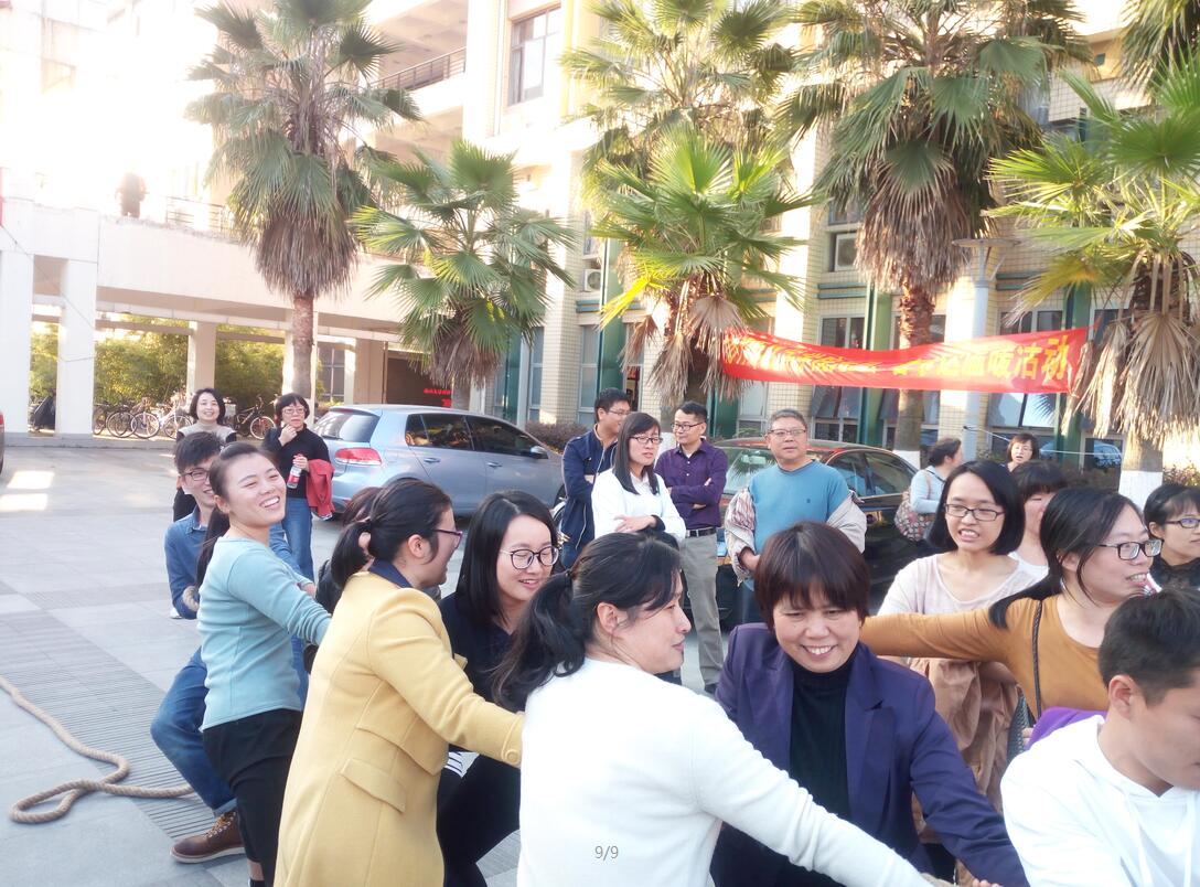 下午的工作会议结束之后,学院安排了教职工拔河比赛和两人三足活动,比赛还没开始,老师们就已经摩拳擦掌,跃跃欲试,经过紧张激烈的角逐,有机化学的老师们还是技高一筹,最终赢得了比赛。两人三足游戏中老师们配合默契,都取得了不错的成绩。活动现场笑声不断,大家都充分沉浸在游戏的欢乐气氛中。