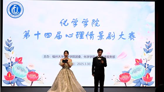 近日,由福州大学化学学院心理健康服务部主办的第十四届化学学院“聚焦青春,演绎心灵”心理情景剧大赛在福州大学旗山校区图书馆博学厅隆重举行。本次比赛邀请到校心理中心黄瑞枫老师、化学学院辅导员董劭敏老师、李星星老师担任评委。学生会主席团及各部门主要负责人、各级学生到现场观摩学习。