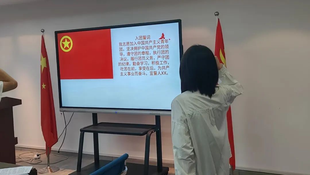 全体新团员面向团旗进行庄严宣誓。