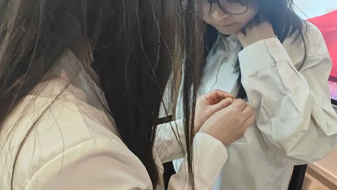 团委副书记李诗琪老师,辅导员吴宗燚老师,吕霖杰老师共同为新团员代表颁发团员证、佩戴团徽。