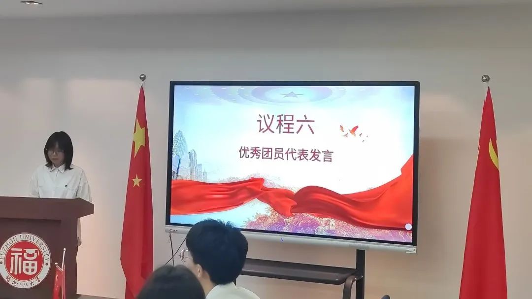 2024级本科生郑语彤同学作为优秀团员代表发言。她表示,共青团是青春的信仰与担当,赋予了我们“对己追求卓越、对集体团结奉献、对社会心怀担当”的使命,希望新老团员以实际行动践行责任担当,共同为团旗增辉、为时代添彩。
