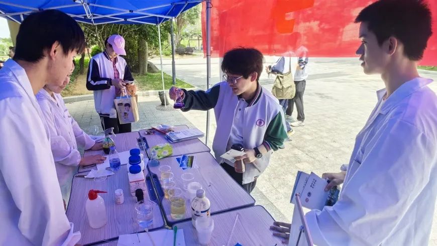 在上午的高校展示活动中,由校招生考试中心王广明老师、化学学院吕霖杰老师带领的化学爱好者协会成员,通过一系列精彩纷呈的趣味实验,为八中师生打造了一场沉浸式科普体验,让科学魅力在同学们的心中落地生花,为拔尖创新人才的早期培育奠定了基础。