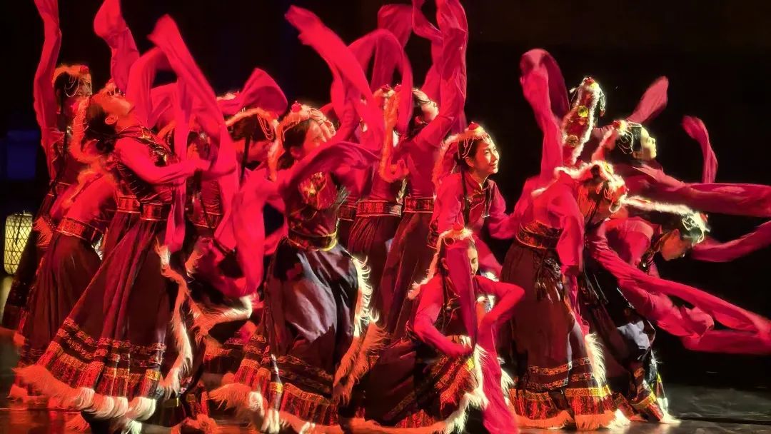 “当水袖扬起雪山风,藏族舞者的足尖踏碎草原晨露,经典舞步里藏着牦牛群的不羁,水袖翻涌间流出雅鲁藏布江的豪迈。听!旋律里流淌的不只是弦子的悠扬,更是把【党心连民心】唱成山歌的炽烈。”