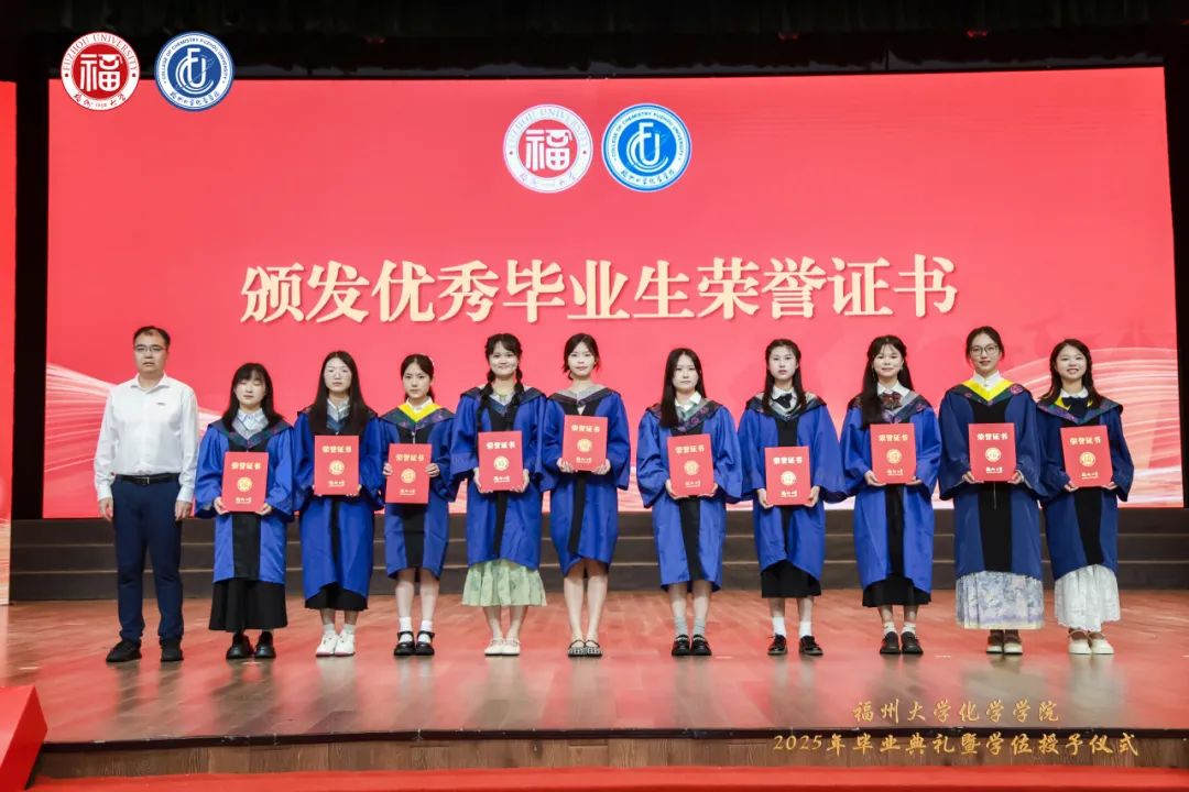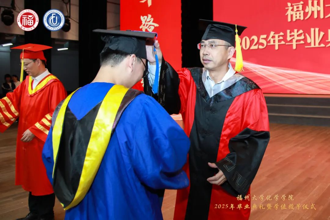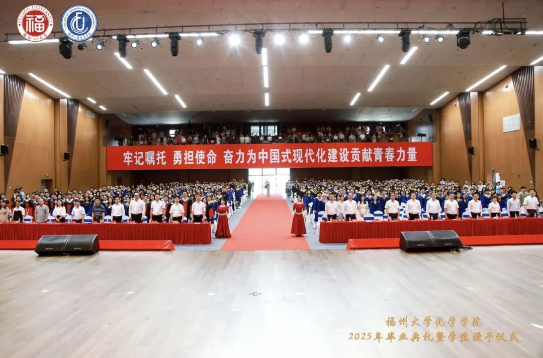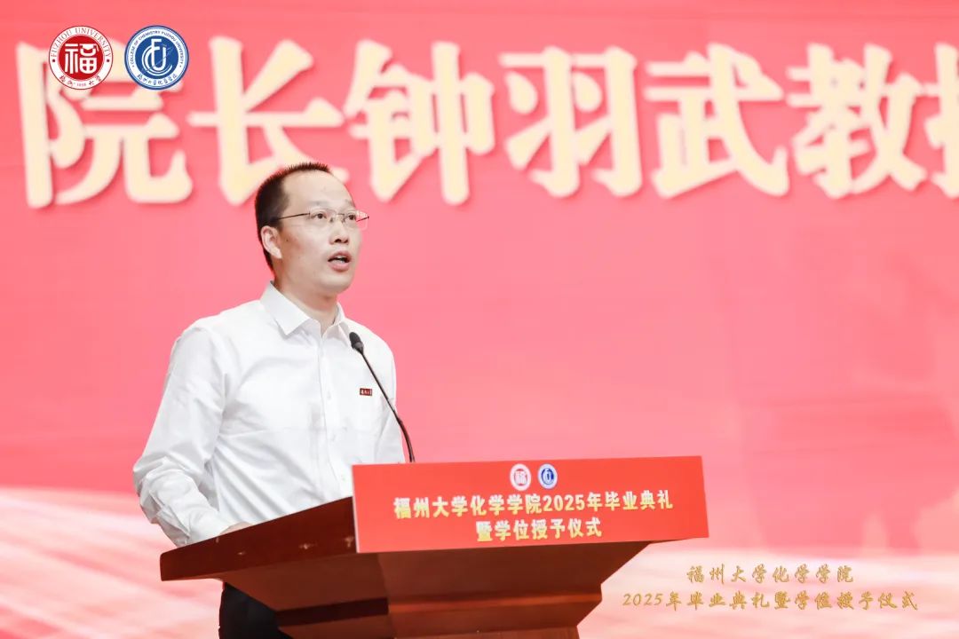 福州大学发展规划与学科建设处处长郑寿添教授、学院党委曾忠毅书记、院长钟羽武教授、学院党委柯江锋副书记、副院长林子俺教授、副院长张金水教授、副院长谢在来教授、化肥催化剂国家工程研究中心副主任江国辉老师、院工会主席陈珠灵教授级高级实验师、院长助理叶克印教授、院长助理谭理教授、院长助理江龙光教授出席本次典礼。各系所主任,教师代表,各年级辅导员、2025届毕业生及家长代表到场参加。典礼由学院党委副书记柯江锋主持。
