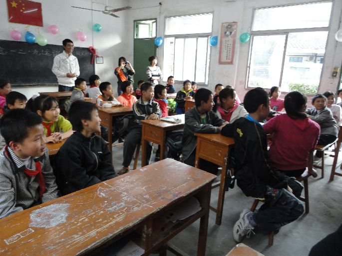 由于时间比较有限,一到教室志愿者们便开始紧锣密鼓地布置起教室起来,小到气球(气球里装有试题),大到龙虎榜,都比较细心地进行了布置。然后进行分组,一共分成三个大组,每个大组又分为2-3个小组,然后将志愿者分配到不同的组里。很快,志愿者便和小学生们打成了一片。
