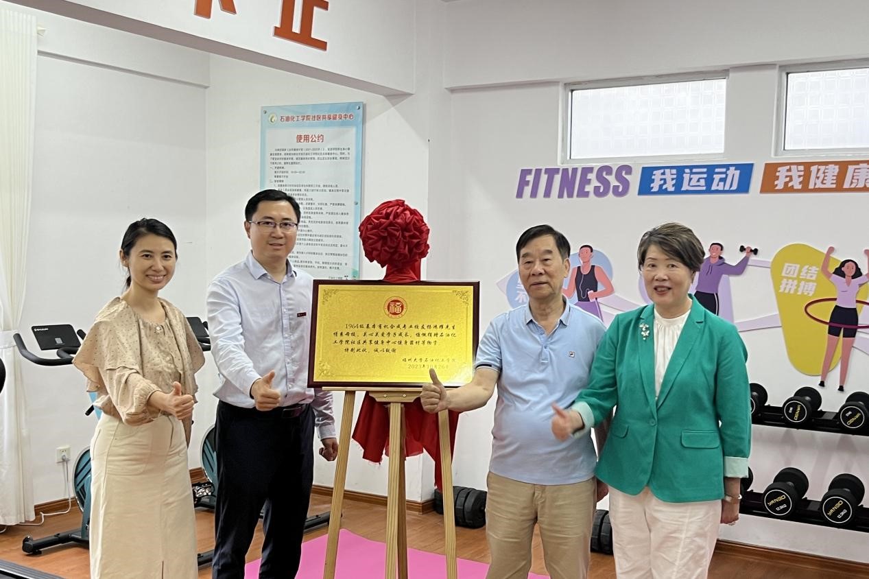在石油化工学院学生宿舍楼,杨鸿耀先生、杨赛芳女士、石化学院领导共同为共享健身中心揭牌,并参观了石化学院学生社区共享社团活动中心、校企合作党团活动中心、学业发展中心。他期望同学们能够充分利用“一站式”学生社区的共享空间与资源,认真钻研学术知识,积极参加体育锻炼,努力成为德智体美劳全面发展的新时代新青年。