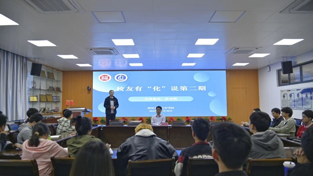 春风不语化桃李,弦歌不绝润新苗。为帮助同学们科学合理规划学业与职业发展,发掘自我潜能,提高综合素质,2023年11月30日,我院校友有“化”说活动第二期于嘉锡楼413会议室举办。此次活动邀请到厦门大学物理科学与技术学院教授,博士生导师,我院2004级化学基地班校友林友辉作题为“全力以赴,静待花开”的成长经验分享。化学学院党委常凯副书记、2021级化一班班主任李远明老师、2023级化一班班主任陈发杰老师、2023级制药班班主任晏宏老师以及部分学生代表参加了此次活动。