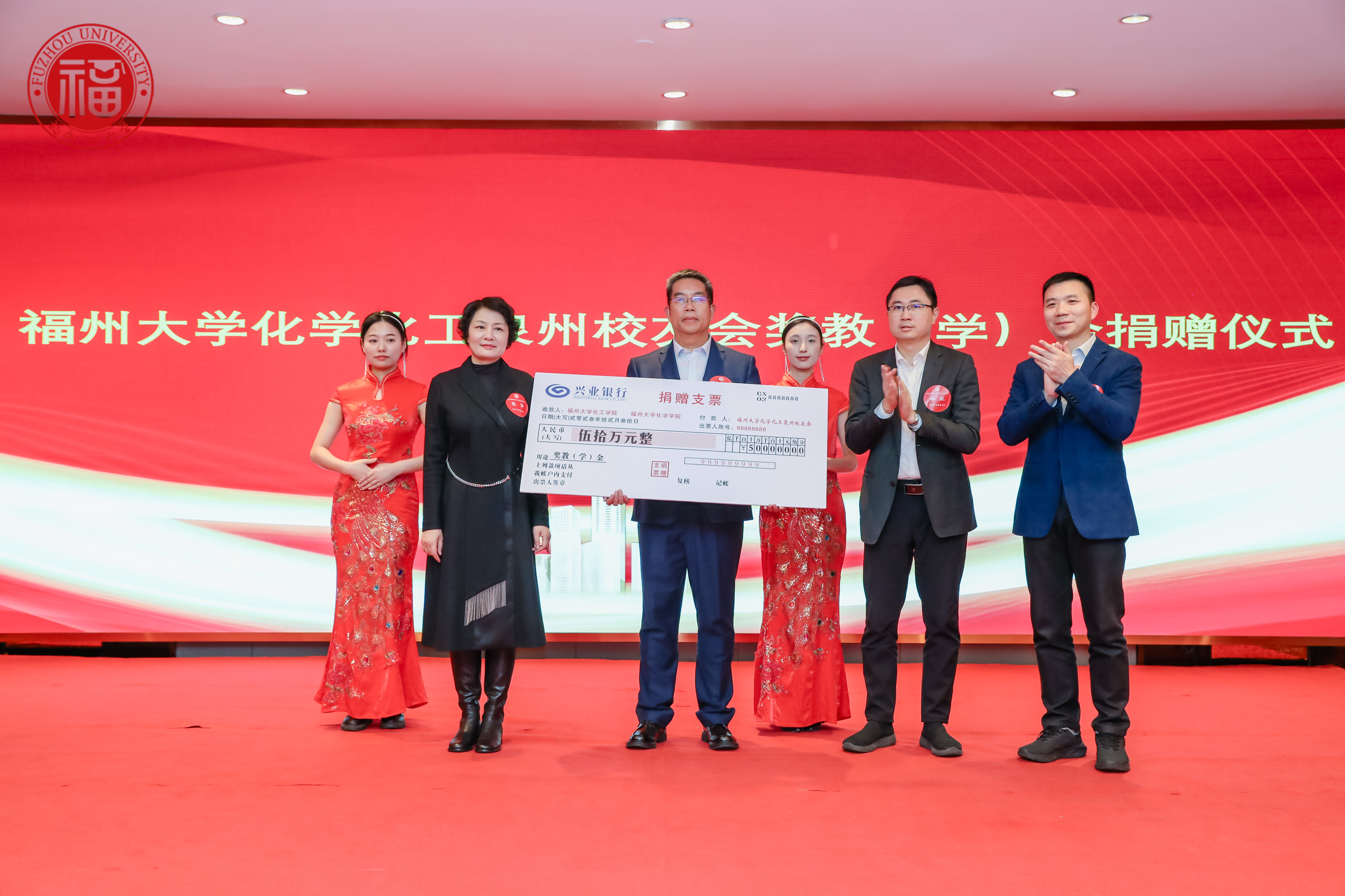 随后举行福州大学化学化工泉州校友会向化学学院和化工学院捐赠50万元奖教(学)金的签约和捐赠仪式。