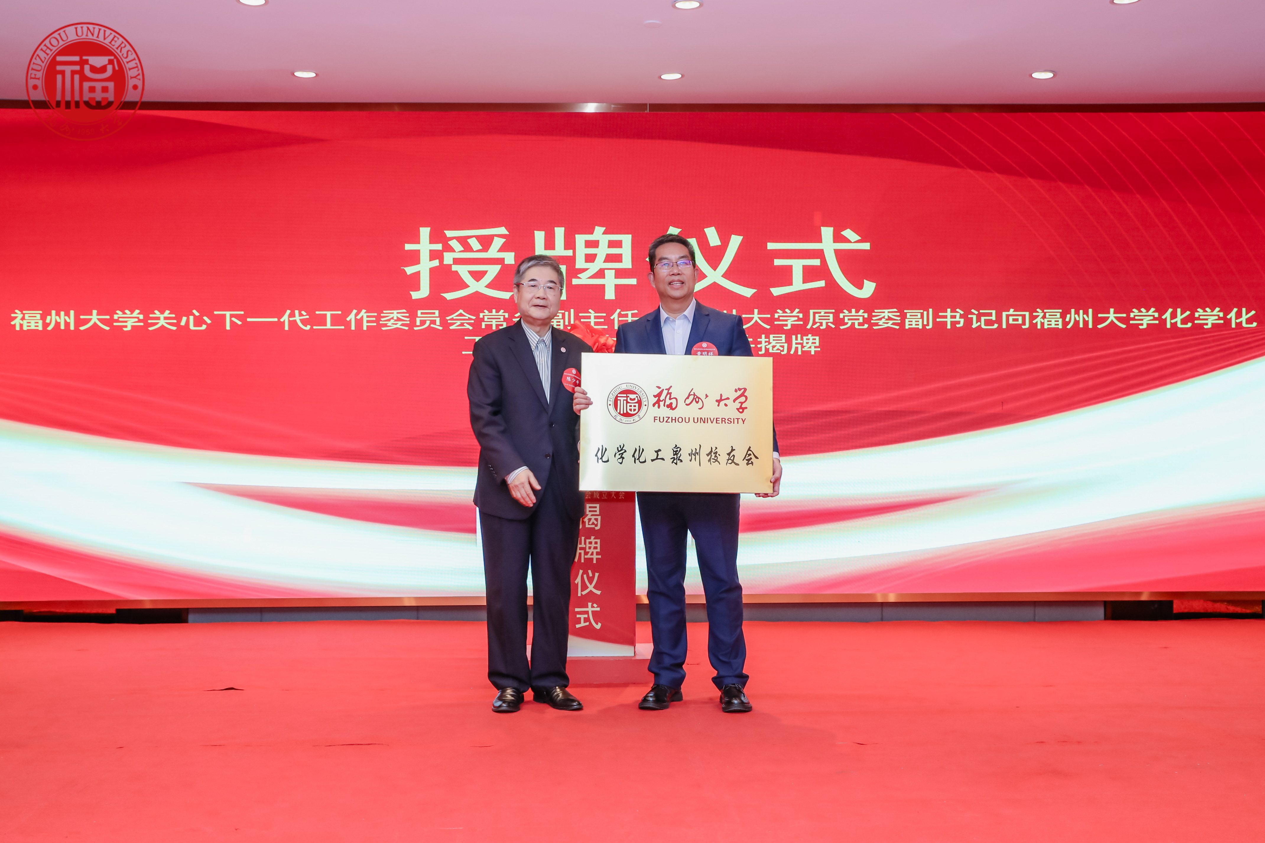 福州大学关心下一代工作委员会常务副主任、福州大学原党委副书记陈少平研究员为福州大学化学化工泉州校友会授牌。福州大学化学学院和化工学院的领导们分别为会长、监事长及监事、副会长、常务理事等授牌。黄明祥会长向秘书长授牌,李巧军秘书长向副秘书长授牌。