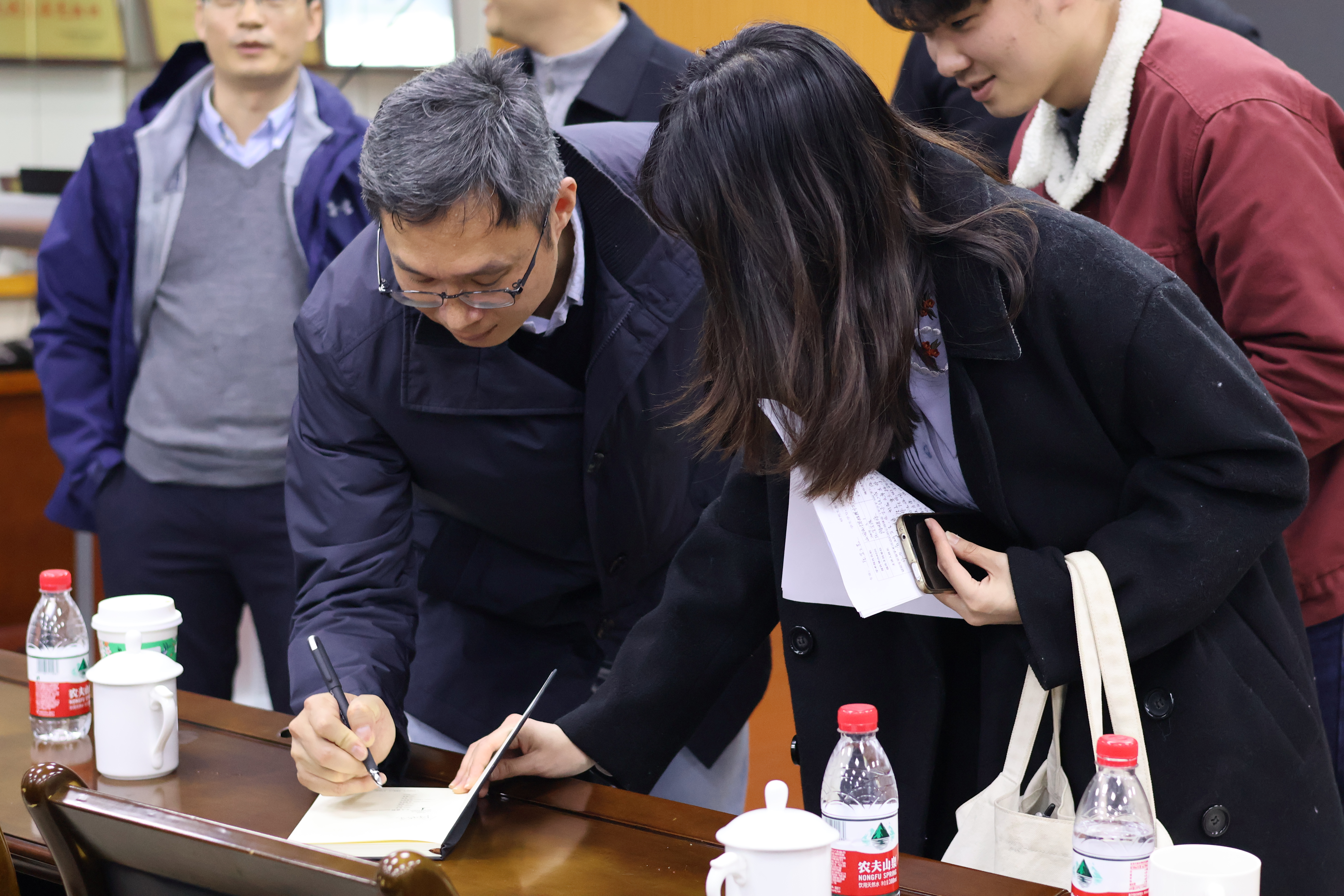 活动结束后,同学们依旧热情高涨,纷纷上前向陈晓东校友的倾情分享表示衷心感谢。陈晓东校友在同学们的学习笔记本上题字,勉励各位学弟学妹们把握创新机遇,勇攀科技高峰。