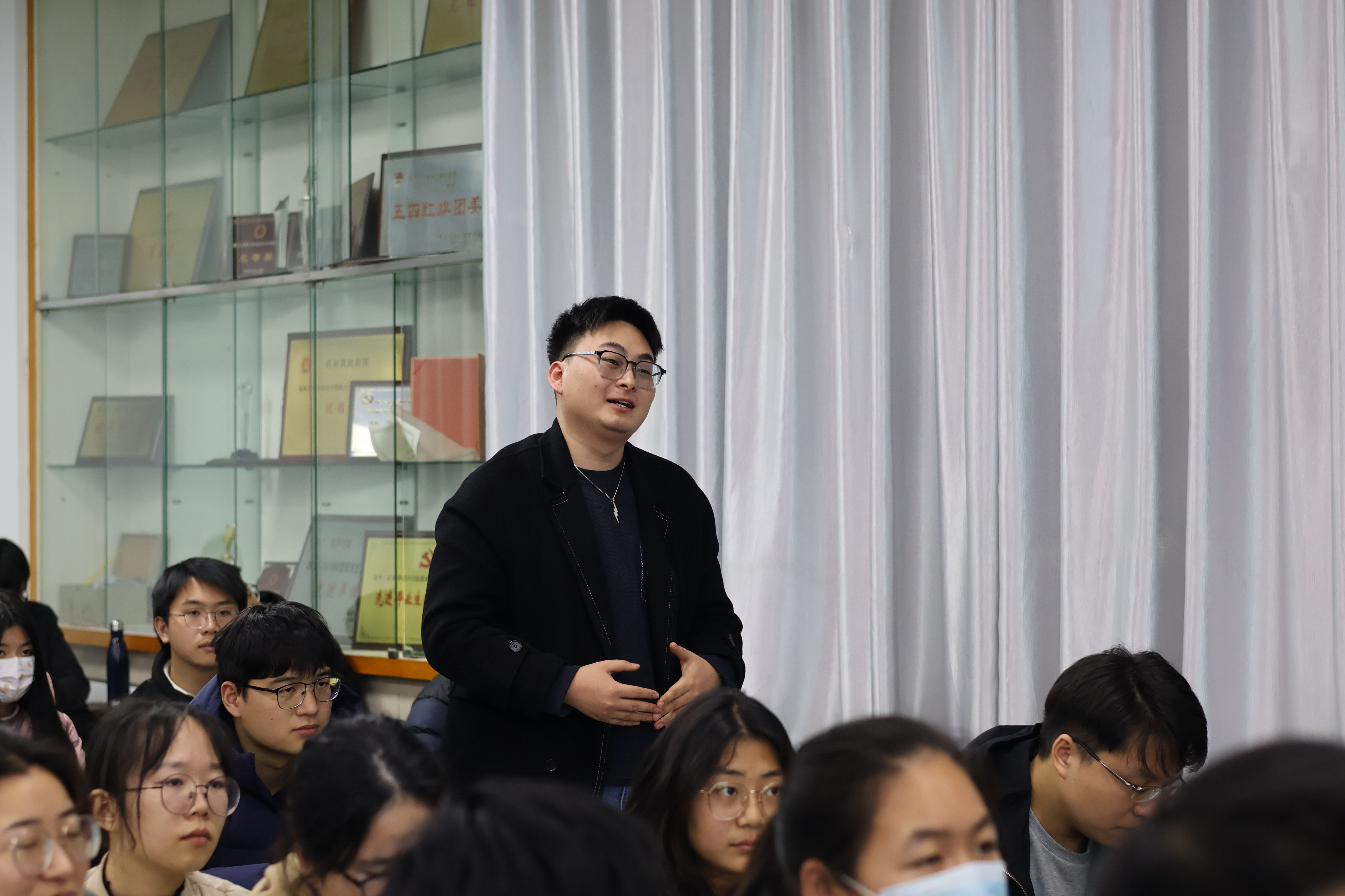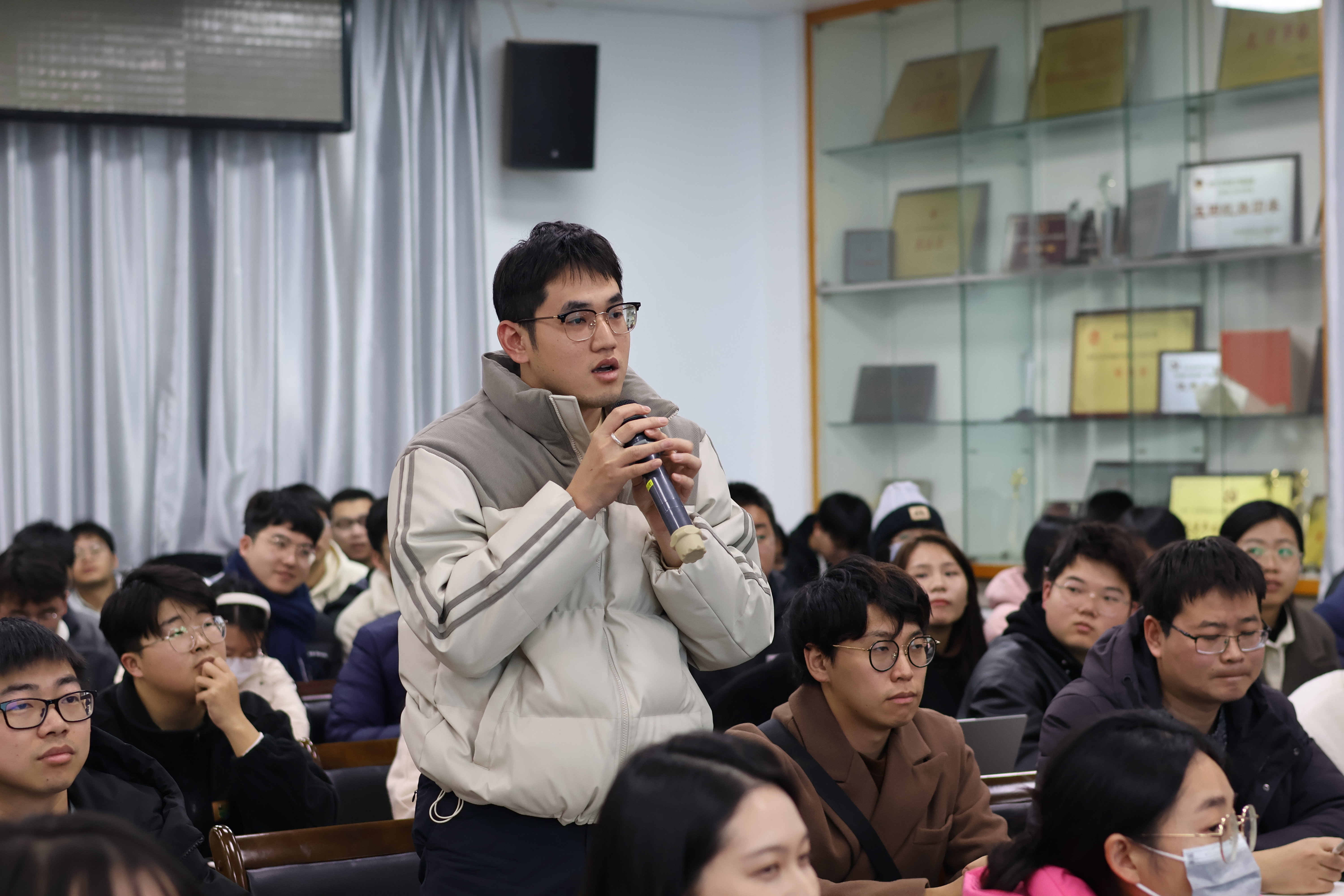 在互动环节中,现场同学踊跃发言,陈晓东校友结合自己的科研经验,既旁征博引,又深入浅出,不遗余力地回答了同学们关于提升文章启发性,结构优化等的问题。他提醒同学们,作为在学习阶段的研究生,首先要提高设计实验的能力,做到实验结果扎实且令人信服;而科研思维的提升关键在科研新手阶段的积累,要先学会模仿和阅读范例,不要急于求成。