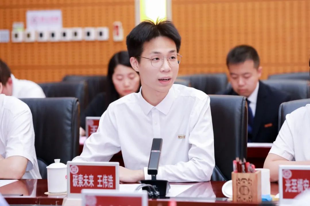 我院党委常凯副书记、国家级青年人才郑远辉教授、2021级嘉锡化学拔尖班本科生王伟浩、2022级生物化工专业博士生陈李云在座谈会上作为代表发言