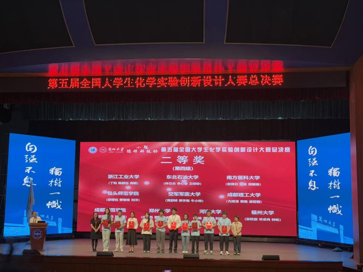 2025年8月21日至24日,第五届全国大学生化学实验创新设计大赛总决赛于兰州大学举行。由2022级、2023级本科生张钦旗、毕卓冉、钟屹组成,陈岚岚、许紫婷两位教师指导的福州大学代表队凭借新创实验项目《双重放大功能核酸探针用于水中抗生素的超灵敏检测》在激烈角逐中脱颖而出,荣获全国二等奖!