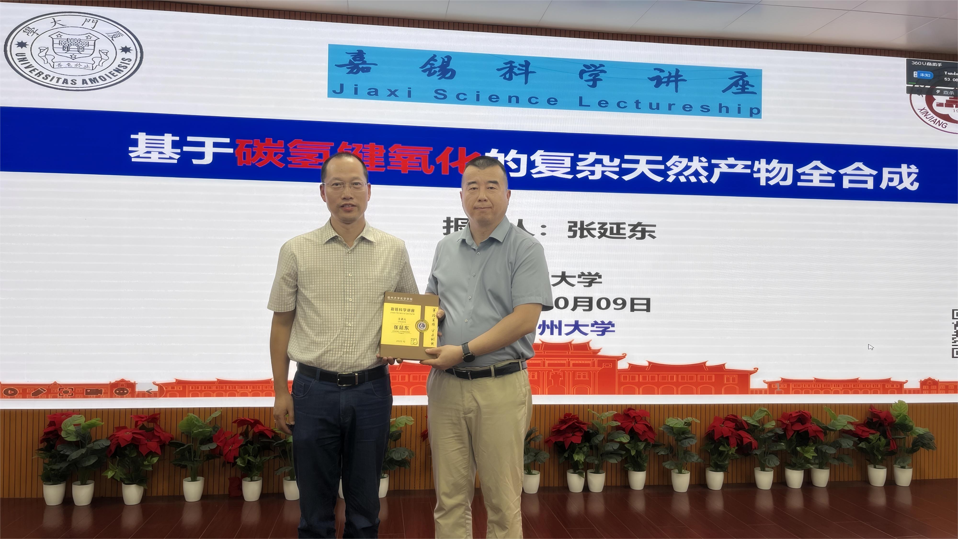 10月9日下午,我院在嘉锡楼413顺利开展嘉锡科学讲座第002期。厦门大学化学化工学院张延东教授受我院有机合成与功能研究所邀请,担任嘉宾做专题报告。学院院长钟羽武代表学院,向张延东教授颁发嘉锡科学讲座主讲人荣誉证书。