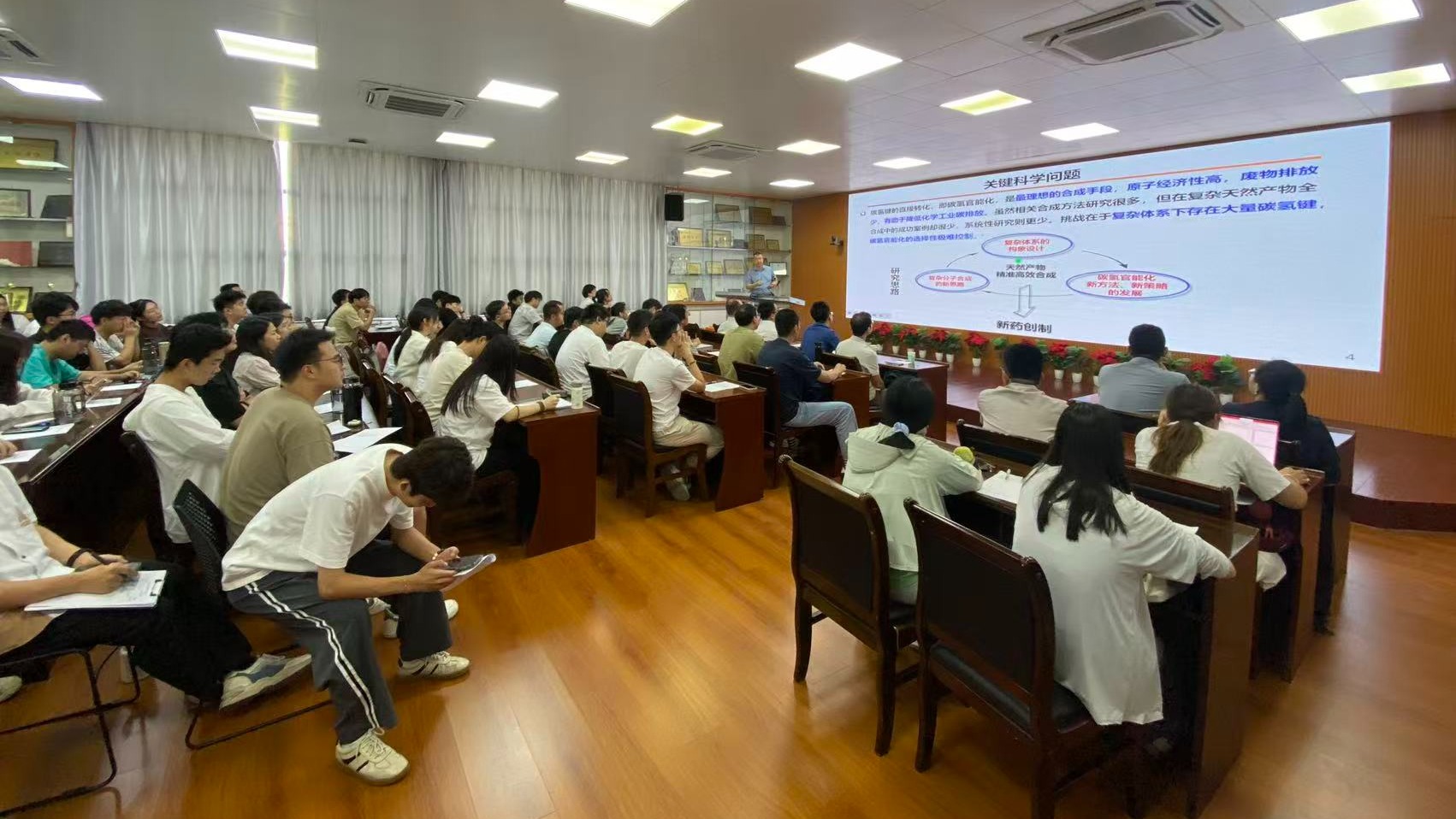 张延东教授做了题为“基于碳氢键氧化的复杂天然产物全合成”的报告。报告深入浅出、与经典有机理论相结合,分享了碳氢键氧化策略在多环高氧化态萜类和甾体类分子合成中的多个成功案例,并围绕“复杂分子体系碳氢键的精准氧化”这一科学难题,提出了将碳氢氧化新方法的发展、计算化学辅助的分子构象设计以及分子骨架立体电子效应精细调控等手段紧密结合,发展氧化接力碳氢官能化策略,着力解决碳氢键氧化反应的化学、区域及立体选择性,提高复杂天然产物的氧化态构筑效率。