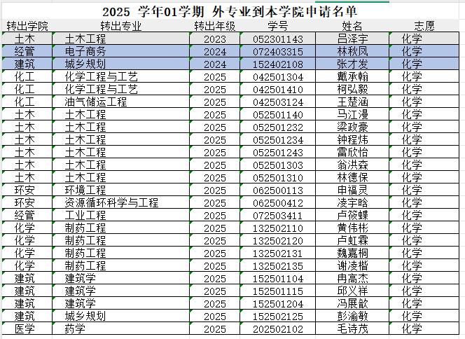 (二)转专业笔试具体名单:
