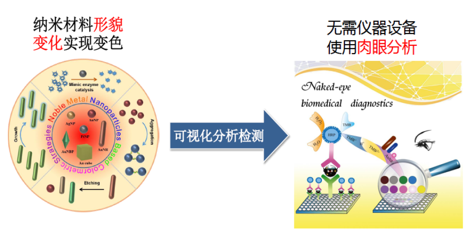 结合免疫分析技术以及适配体技术的高选择性,利用金纳米材料形貌变化引起的颜色变化,该课题组构建了以肉眼为读出装置定量(或半定量)分析平台,满足家庭或资源匮乏地区的分析检测需求。相关工作获得了2019年获福建省科技进步一等奖。